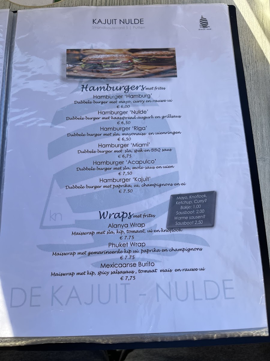 Kajuit Nulde Menu